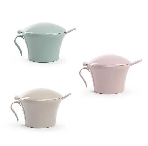 Coloridos azucareros en metacrilato transparentes de material muy resistente, con tapas en diferentes colores. Con cucharita del color de la tapa incluida. Color al azar. Capacidad 320ml. Medida 15×11,5x9cm