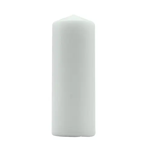 Vela decorativa en bloque de parafina en color blanco. Diseño cilíndrico y acabado liso. Contiene 570gr. Tiempo de combustión 70h. Medida 7 x 20 cm