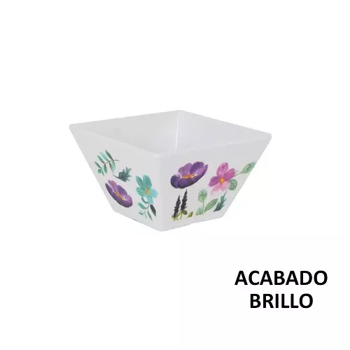 Cuenco cuadrado «Sakura», de material melamina con acabado brillo. Medida 10x10x6cm