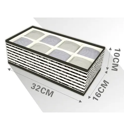 Caja rectangular de almacenamiento con doce compartimentos. Medidas del producto 36 x 16 x 10 cm.
