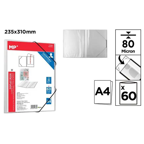 Carpeta de fundas fabricada en polipropileno transparente. Fundas transparentes. Cierre por gomillas y portada personalizable. Para documentos A4. 60 fundas. Medidas de la carpeta: 235 x 310 mm. Color transpartente.
