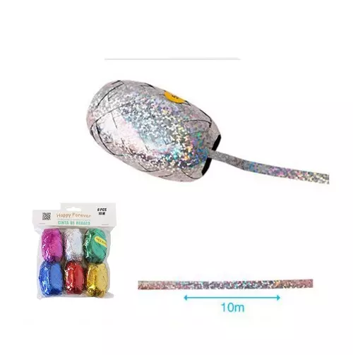 Cinta para regalo 6pcs, colores surtidos. Medida 10m.