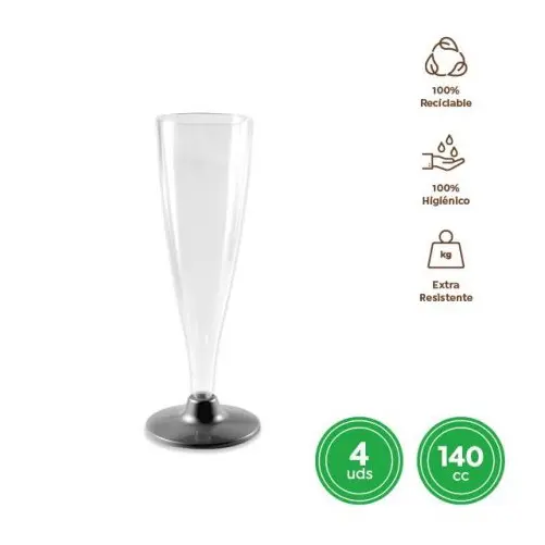 Copa Cava Flauta Reutilizable Transparente Pie Plata 140CC 4UDS