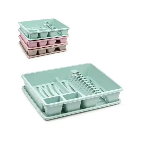 Deja tus platos y cubiertos secar en este escurreplatos rectangular. Hecho de plástico. Colores surtido, al azar.