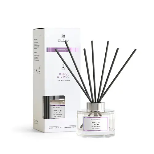 Difusor de aroma en stick premium con fragancia frutal con notas de salida de melocotón y coco; notas de corazón como ciruela e higo; y notas de fondo de vainilla y ámbar. Ideal para crear un ambiente atrevido y tropical.