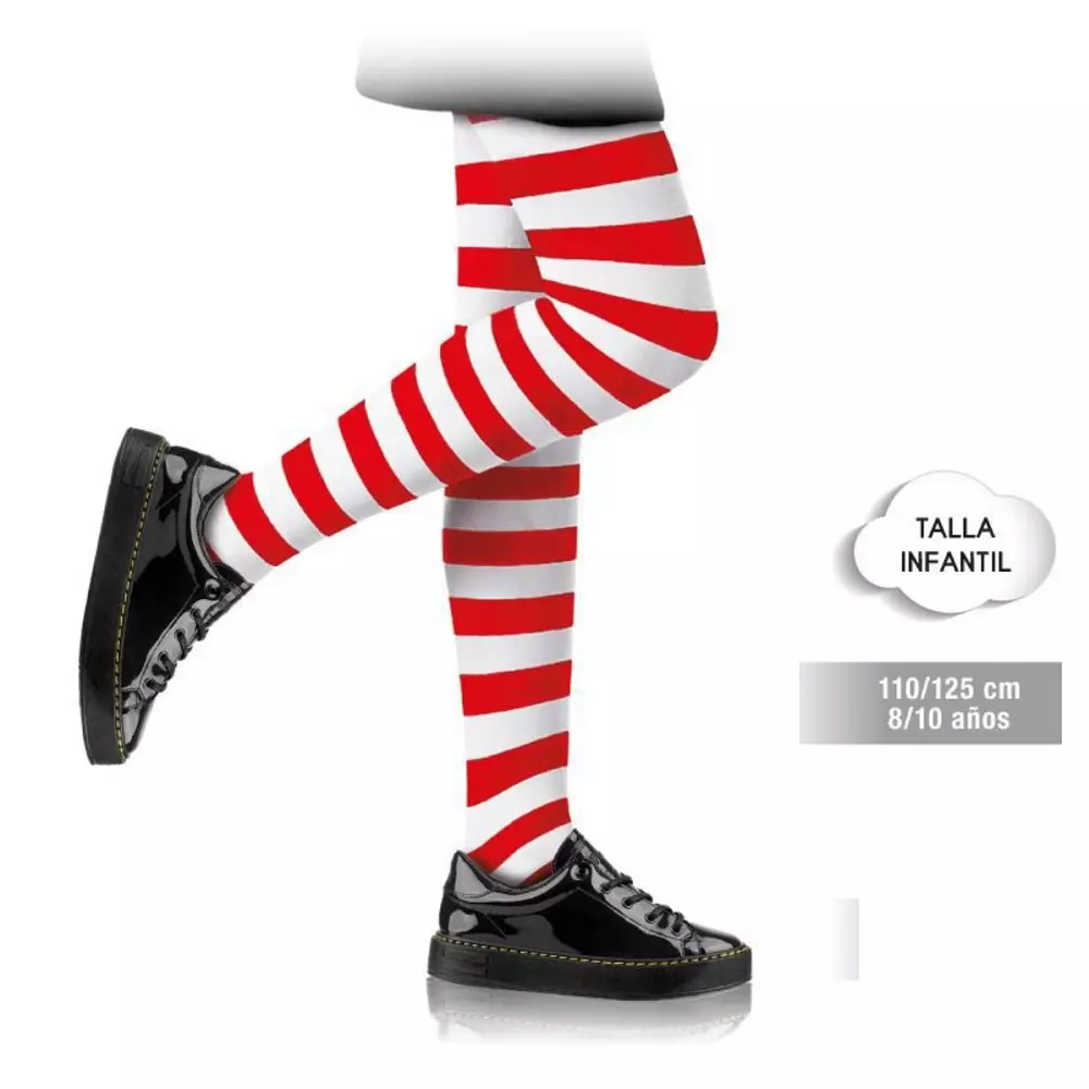 Panty de rayas en color rojo y blanco. Talla infantil, 8-10 años. *Los colores originales pueden variar de tonalidad respecto al color de la fotografía.