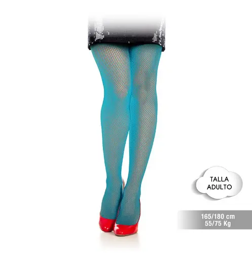 Panty de red fina en color azul fosforito. *Los colores originales pueden variar de tonalidad respecto al color de la fotografía.
