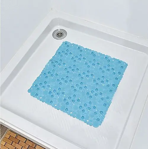 Alfombra cuadrada de ducha PVC con agujeros para que el agua fluya. Con ventosas en la suela para una mayor adherencia. Hecho de PVC sin phthalates, siendo respetuoso con el medio ambiente (eco friendly). Medidas del producto Ø 50 x 50 cm Descubre más productos aquí