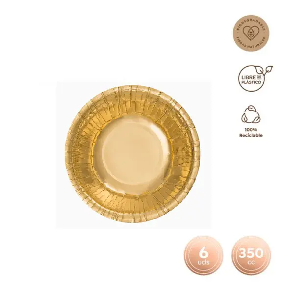 Bol redondo de color oro metalizado 350cc 6uds
