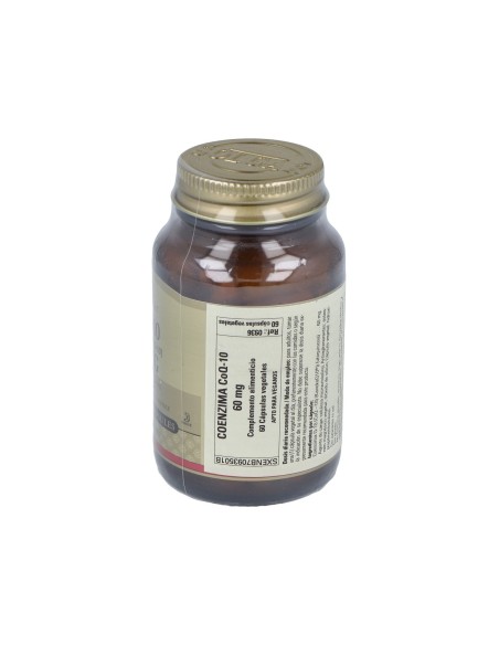Ayuda a mantener en estado óptimo las reservas de energía celular. Ejerce un efecto antioxidante y aporta juventud a todo el organismo evitando una degeneración y envejecimiento celular prematuro. Tiene un poder vigorizante y energizante aportando vitalidad a todo el organismo. Apto para veganos.Precauciones:No recomendado para niños.Composición:Por 1 cápsula:Coenzima Q10 (KanekaQ10®) (ubiquinona)…..60 mgDiluyente: celulosa microcristalina: cubierta de la cápsula vegetal: hidroxipropilmetilcelulosa: antiaglomerantes: estearato de magnesio vegetal, dióxido de silicio.Modo de empleo:Tomar 1 cápsula al día, preferentemente con las comidas o según indicación de un especialista.